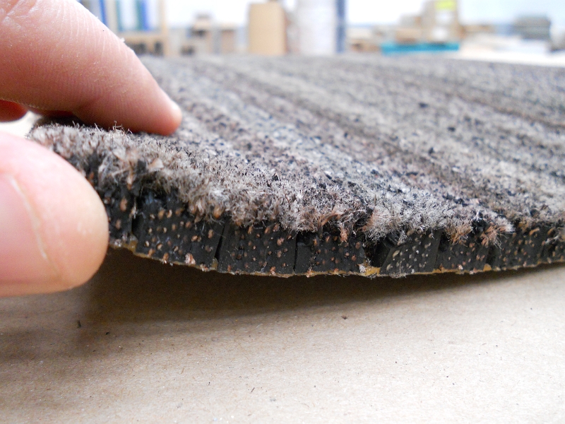 ES. Tirex, alfombra tipo barrera anti-suciedad de alta resistencia fabricada por neumáticos de avión reciclados.